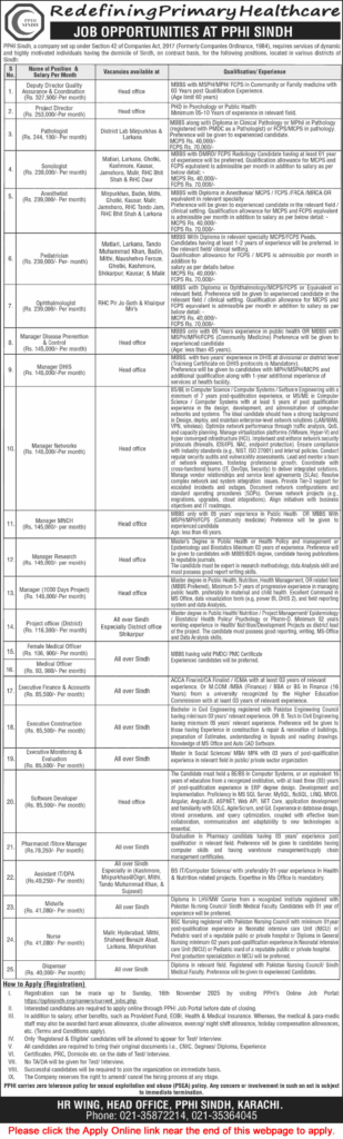 PPHI Sindh (the company “Redefining Primary Healthcare”) has just posted a massive amount of job openings. They are hiring for highly motivated people on a contract basis for jobs all over Sindh, including their Head Office in Karachi.